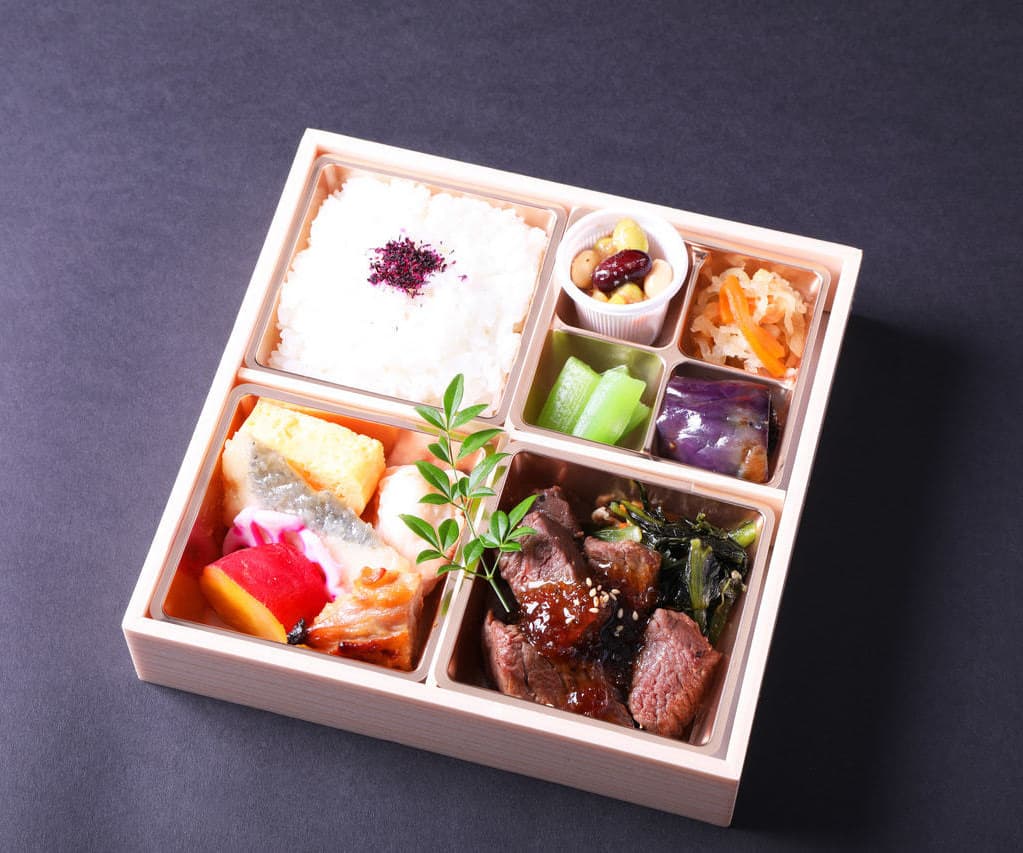 - 控室: 見た目も華やかなお吸い物付きの松花堂弁当で、落ち着いたお時間をお過ごしいただけます。