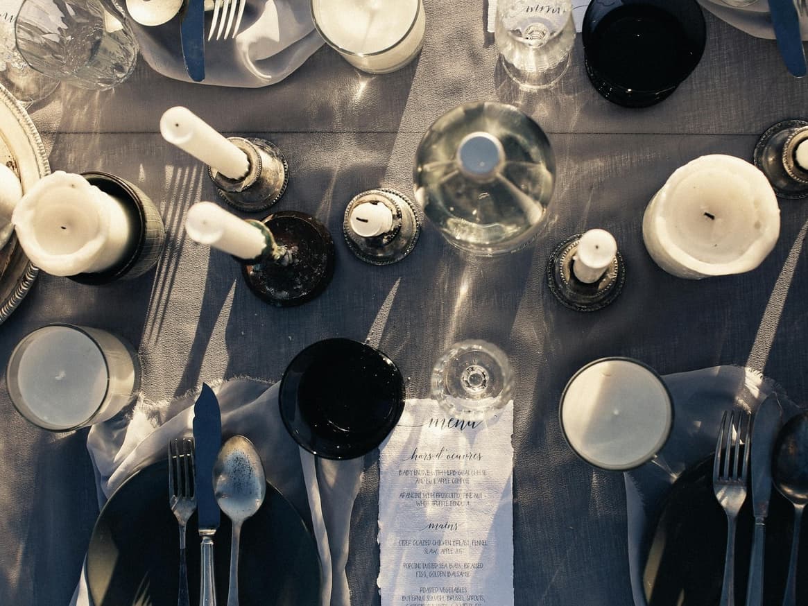 テーブルクロスやお皿、カトラリー類、装花、什器等がすべて料理代金に含まれておりますので、ご予算に関わらず華やかなパーティー会場をご準備致します。