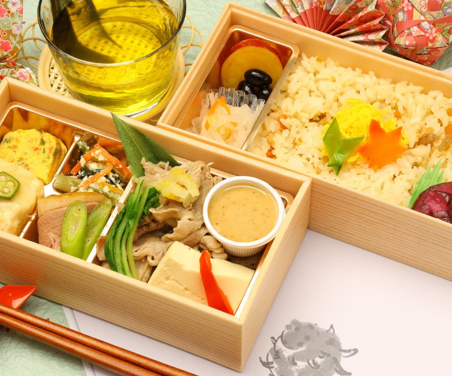 - 控室: 見た目も華やかなお吸い物付きの松花堂弁当で、落ち着いたお時間をお過ごしいただけます。