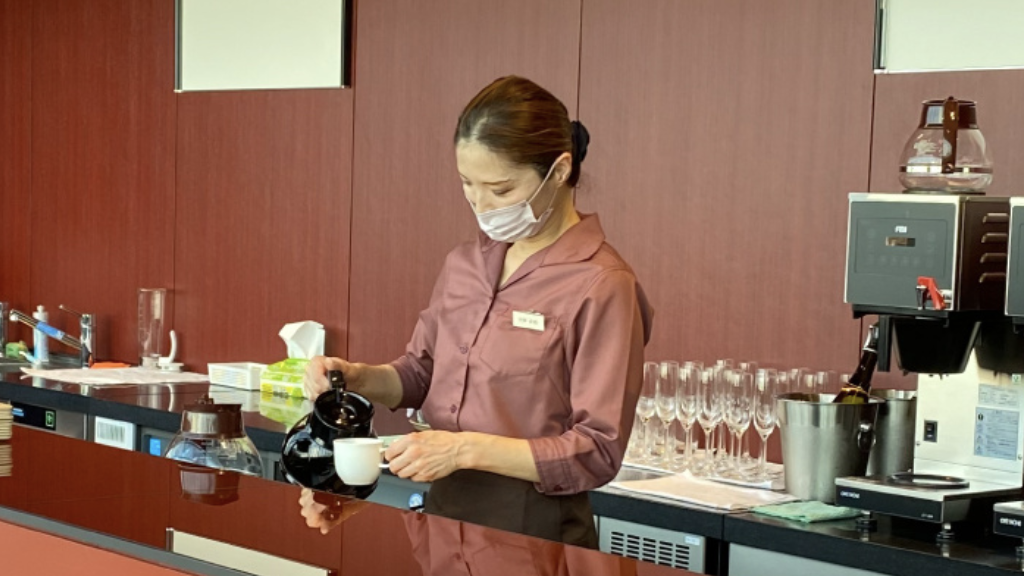 劇場内2Fにある大劇場(2000名収容)に設置されているビュッフェコーナーにて、公演前や休憩中にドリンクサービスを行っています。